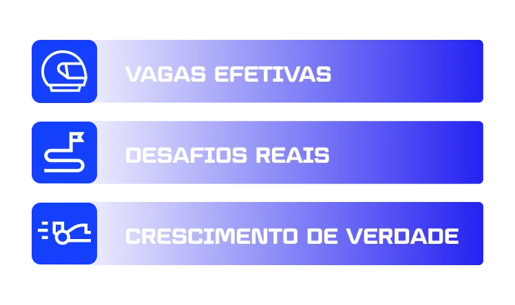 Não! Aqui não tem simulação. O Racer Track é para quem quer viver a realidade do mercado com vagas efetivas, aprendizados práticos e chance real de construir uma carreira com propósito.